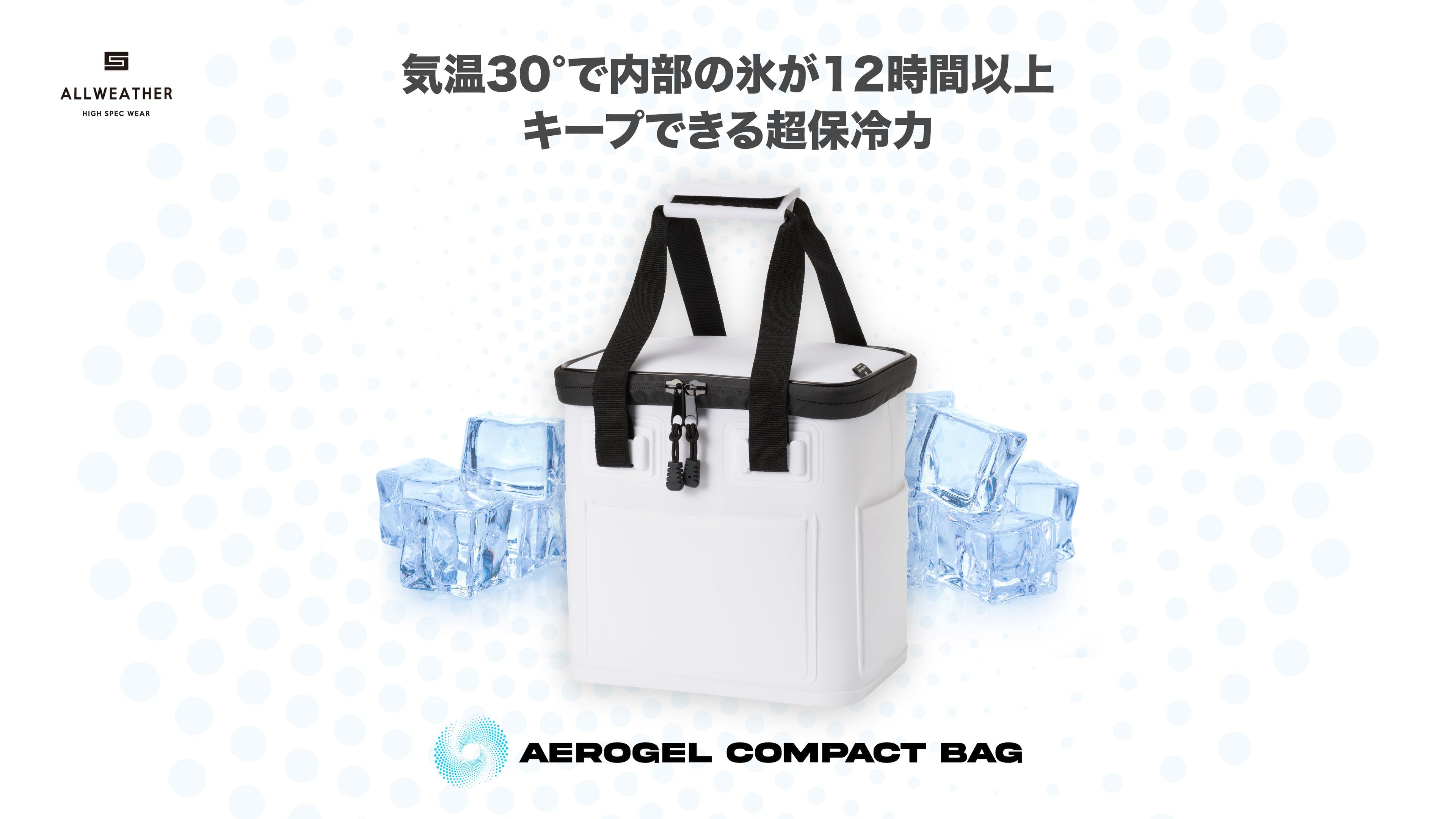 ALL WEATHERの夏のNEWPRODUCTが登場。高機能断熱素材「エアロゲル」を採用した超保冷バッグです。なんと気温30℃でも、12時間経過しても内部の氷が溶け切らない実力派です。